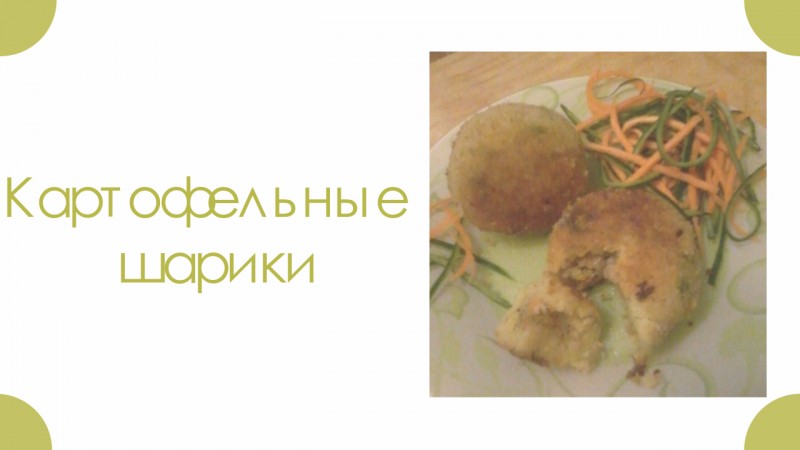 Подождем, пока пюре остынет, чтобы можно было взять в руки. Взяв небольшое кол-во пюре, делаем лепешечку, в серединку кладем фарш и лепим шарик.