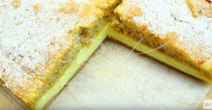 При выпекании масса делится на бисквит и очень вкусную кремовую прослойку.