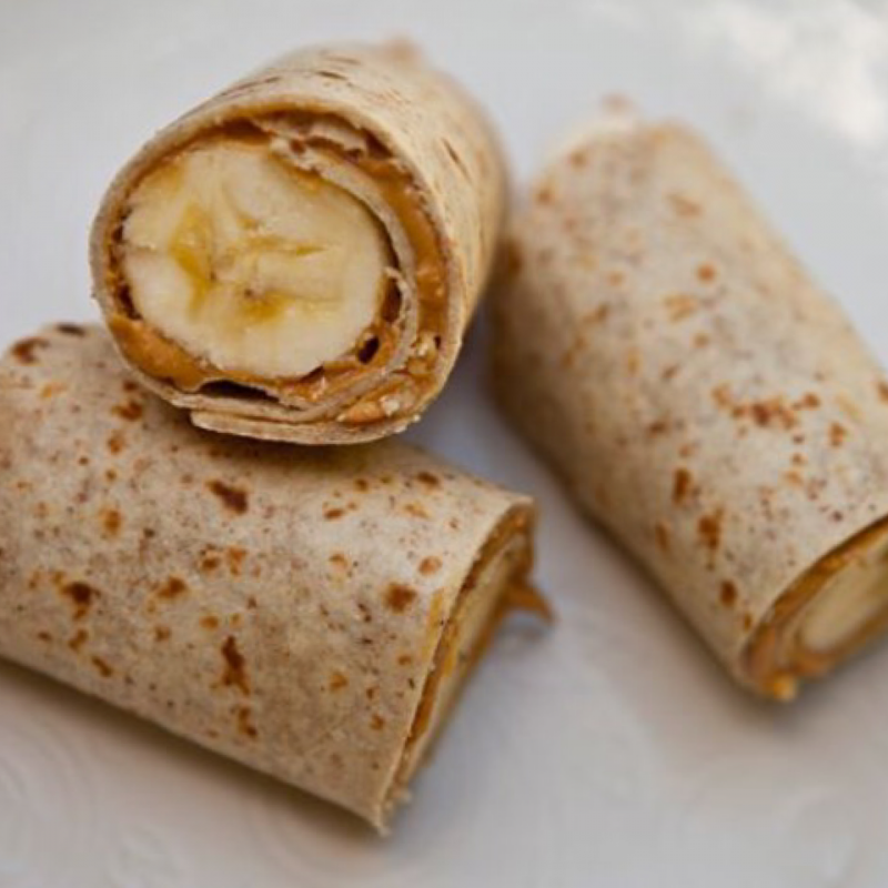 Арахисовая паста 100 г ( можно приготовить самостоятельно ), ванильный йогурт — треть стакана, лаваш — 3-4 шт., бананы — 2-3 шт.
