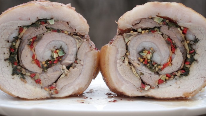 В нашем видео предлагаем Вам рецепт отличного блюда на природе на отдыхе! Рулет из свиной брюшины с овощами, чесноком и с ароматными специями, запечённый в фольге на углях — это превосходное блюдо, которое украсит и разнообразит любой пикник. Такой мясной рулет отлично подойдет на Праздничный стол. Рулет из свинины готовится просто, вкусный как в горячем, так и в холодном виде. Красивый, эффектный и очень вкусный мясной рулет! Получается вкусная, сочная, ароматная мясная нарезка с нежной и пряной начинкой.Такая закуска — вкусная и доступная альтернатива покупной колбасе.