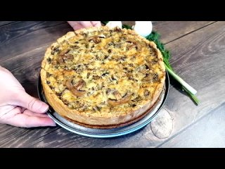 Для приготовления вам понадобится: - мука 1,5 стакана - масло сливочное 110 гр., - соль 0,5 ч.л., - сметана 3-4 ст.л., - лук 2 шт., - грибы шампиньоны 500 гр., - сыр твердый 150 гр., - зелень пучек разной по вашему вкусу, - сливки 200 гр., - яйца куриные 3 шт., - соль для начинки по вкусу - приправы по вкусу