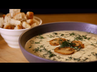 Ингредиенты: 1. Куриный бульон, 500 мл. (0,5 л. воды и 100 гр. курицы, соль по вкусу) 2. Шампиньоны, 300 гр. 3. Картофель, 4 шт. 4. Луковица, 1 шт. 5. Чеснок, 3-4 зубчика 6. Сливочное масло, 50 гр. 7. Сливки 20%, 200 мл. 8. Бекон, 3-4 слайса 1. Ставим готовиться куриный бульон. Для нашего супа понадобится 500 мл. бульона. Для этого понадобится 500 - 600 мл. воды и 100-150 гр. курицы. На видео бульона было сварено больше, чтобы осталось еще на куриный суп. Вы можете сделать также, а можете сварить ...